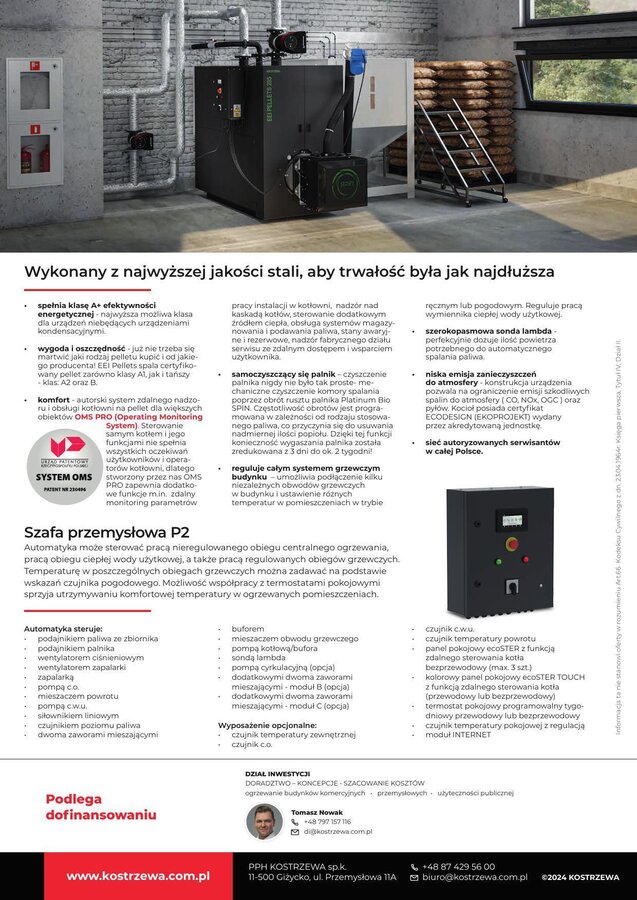 Dobry kocioł to nie wszystko. Zapewniamy kompleksowe rozwiązania dla całej kotłowni, a nawet systemu grzewczego w obiekcie. Proponujemy nowoczesne rozwiązania z zakresu: magazynowania pelletu, pneumatycznego podawania paliwa, automatyki kaskadowej, sterowania pogodowego całą instalacją c.o., sterowania c.w.u. i buforami, ochrony powrotu, czujników paliwa i popiołu, współpracy z pompą ciepła, a także kolektorami słonecznymi i kotłem gazowym.