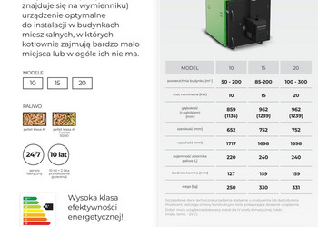 | Zakres mocy cieplnej (pelet) [kW] | 3.0 - 10 | 5-15 | 6 - 20 |