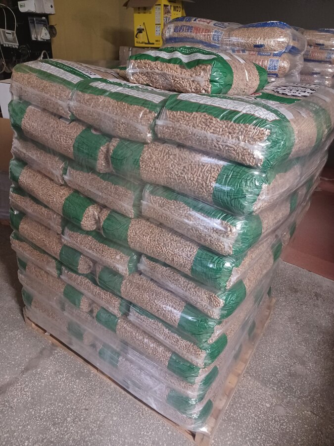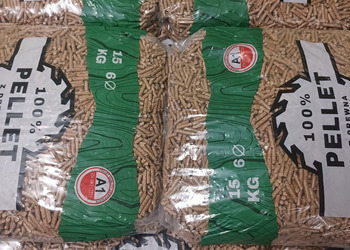Pellet drzewny sosnowy A1 6mm Oferujemy pellet drzewny sosnowy 6mm w całorocznej sprzedaży. Aktualna cena za paletę pelletu A1 ciemny (67worków x15kg= 1005kg ) brutto 2345,00zł Cena brutto za jeden worek 15kg / 35zł Cena za tonę : 2 333,33zł