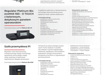 Steruje: podajnikiem paliwa, wentylatorem ciśnieniowym, wentylatorem wyciągowym, wentylatorem zapalarki, zapalarką, temperaturą kotła, temperaturą podajnika, temperaturą c.o., temperaturą c.w.u., temperaturą zewnętrzną, temperaturą pomieszczenia programowalną, sondą lambda, pompą c.o., pompą c.w.u., zaworem mieszającym, współpraca z modułem GSM umożliwia