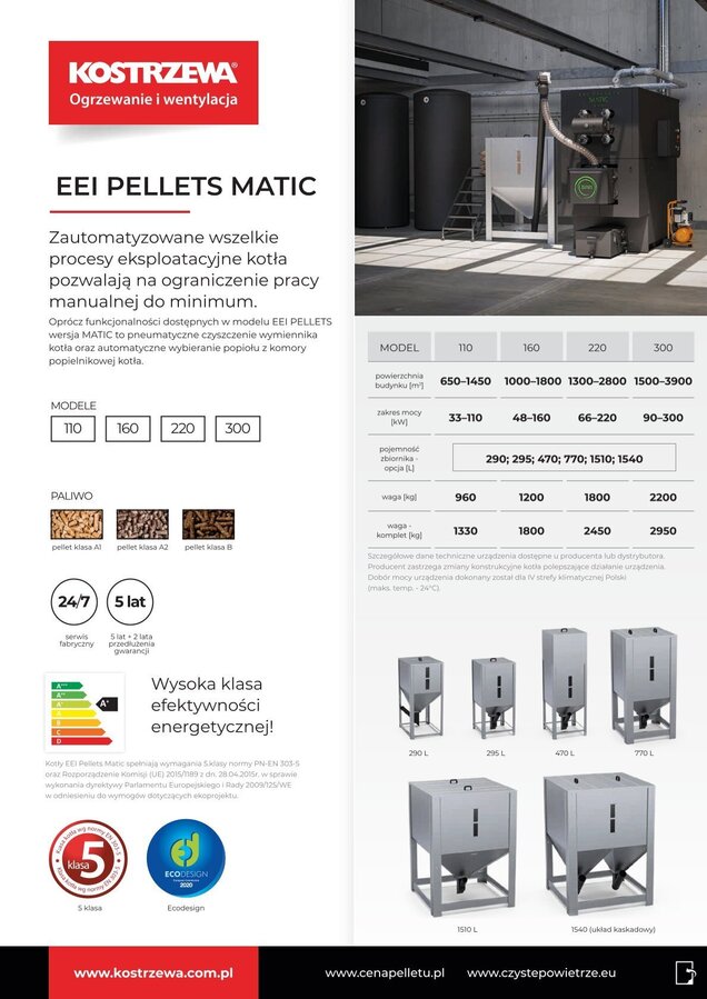 | Klasa kotła wg EN 303-5:2012 | 5 | 5 | 5 | 5 | |