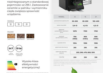 | Zakres mocy cieplnej (pelet) [kW] | 3,9- 13 | 4,5-15 | 6,3- 21 |